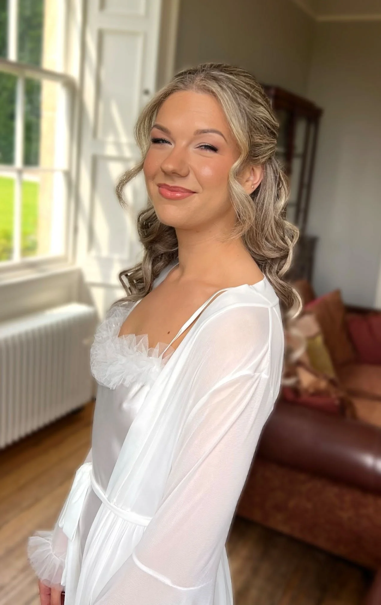 With over a decade of professional experience across bridal, fashion, film, and high-definition makeup, I specialise in timeless, radiant looks that are just as beautiful in person as they are on camera. From your personalised consultation and trial through to your wedding morning, everything is fully tailored to you — so you can feel confident, radiant, and completely at ease all day long.